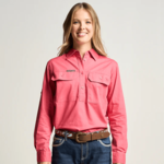 SOMERSET | Womens Half Button Long Sleeve Work Shirt - Hibiscus Pink OBCWWS001-HIB